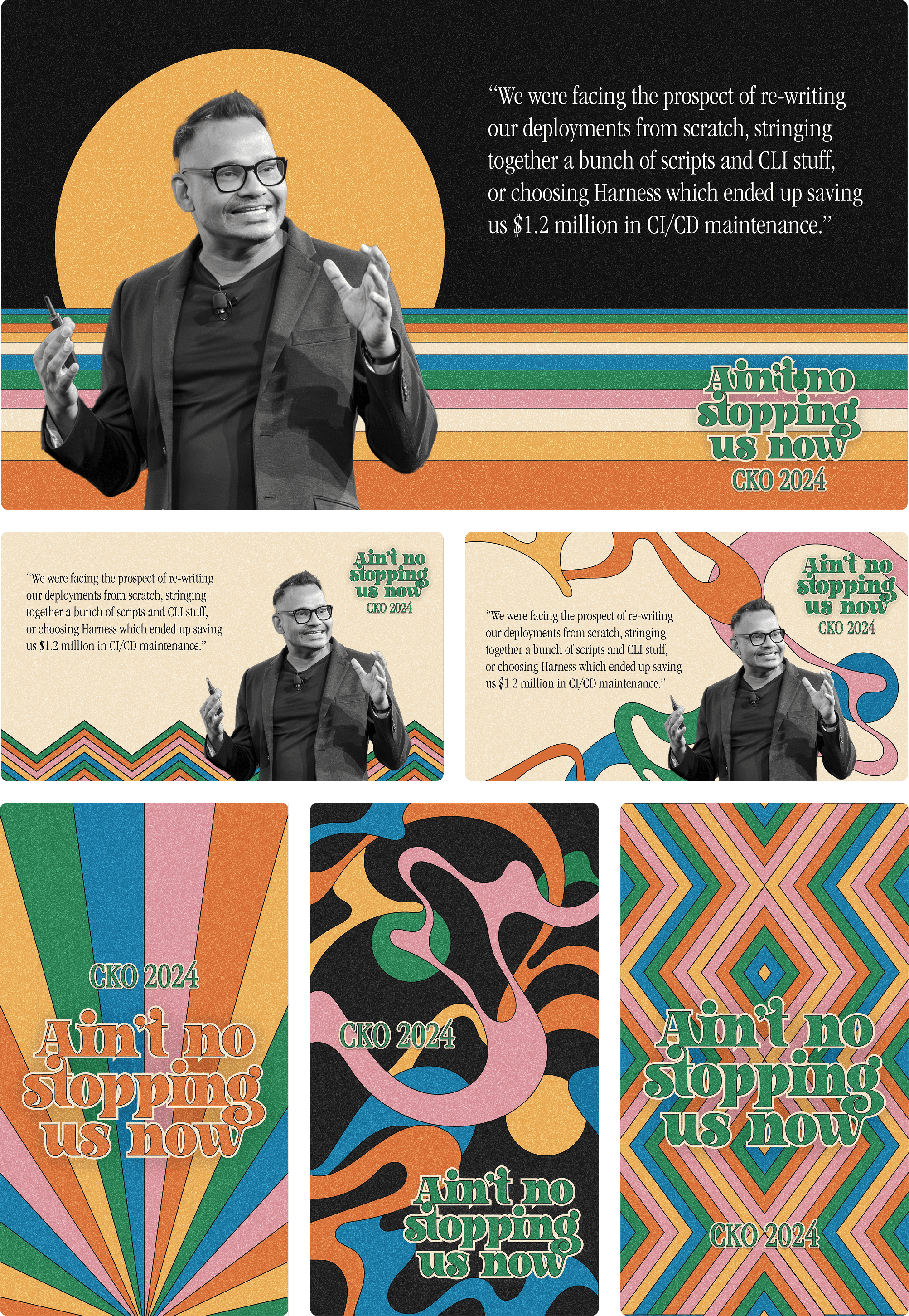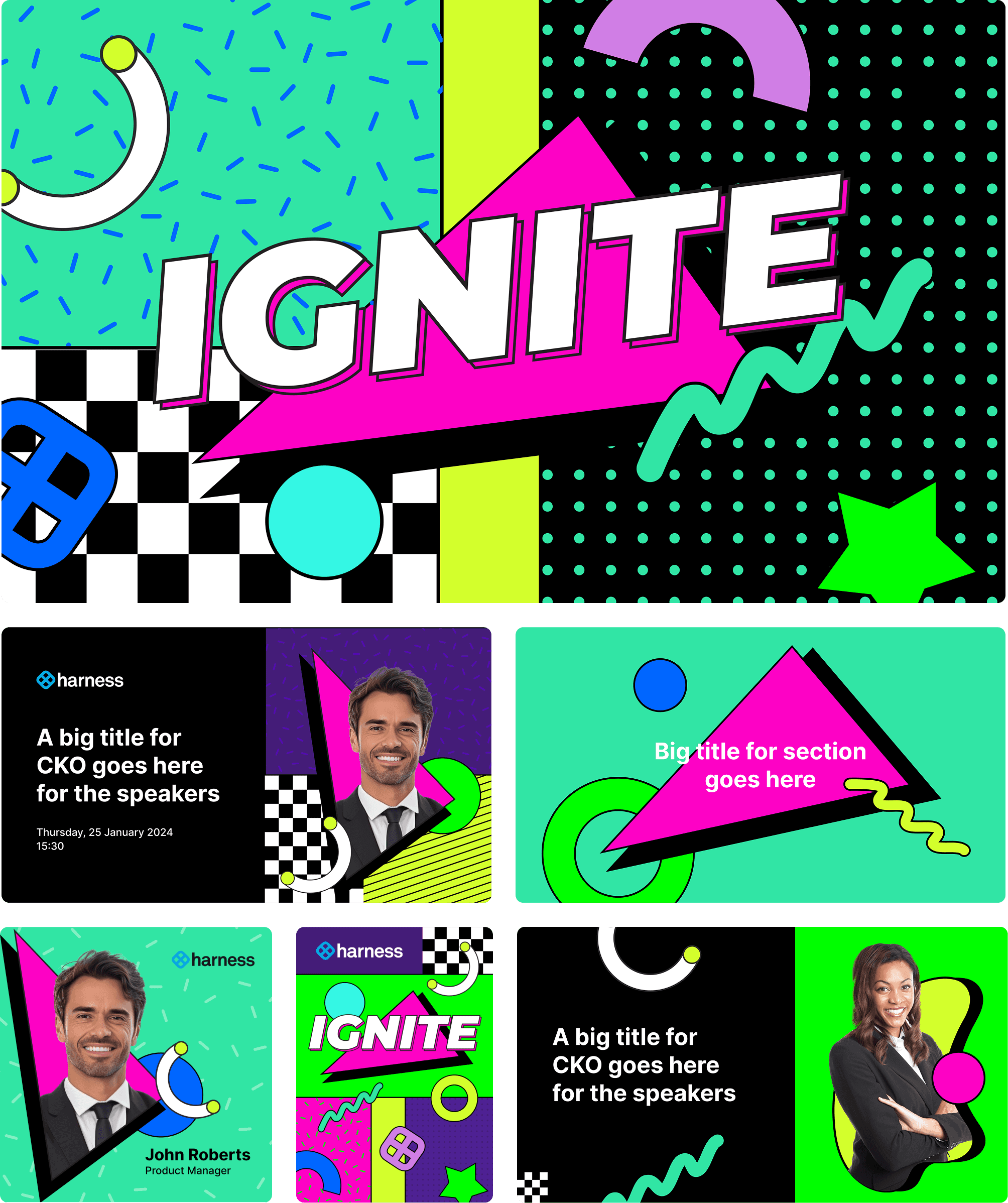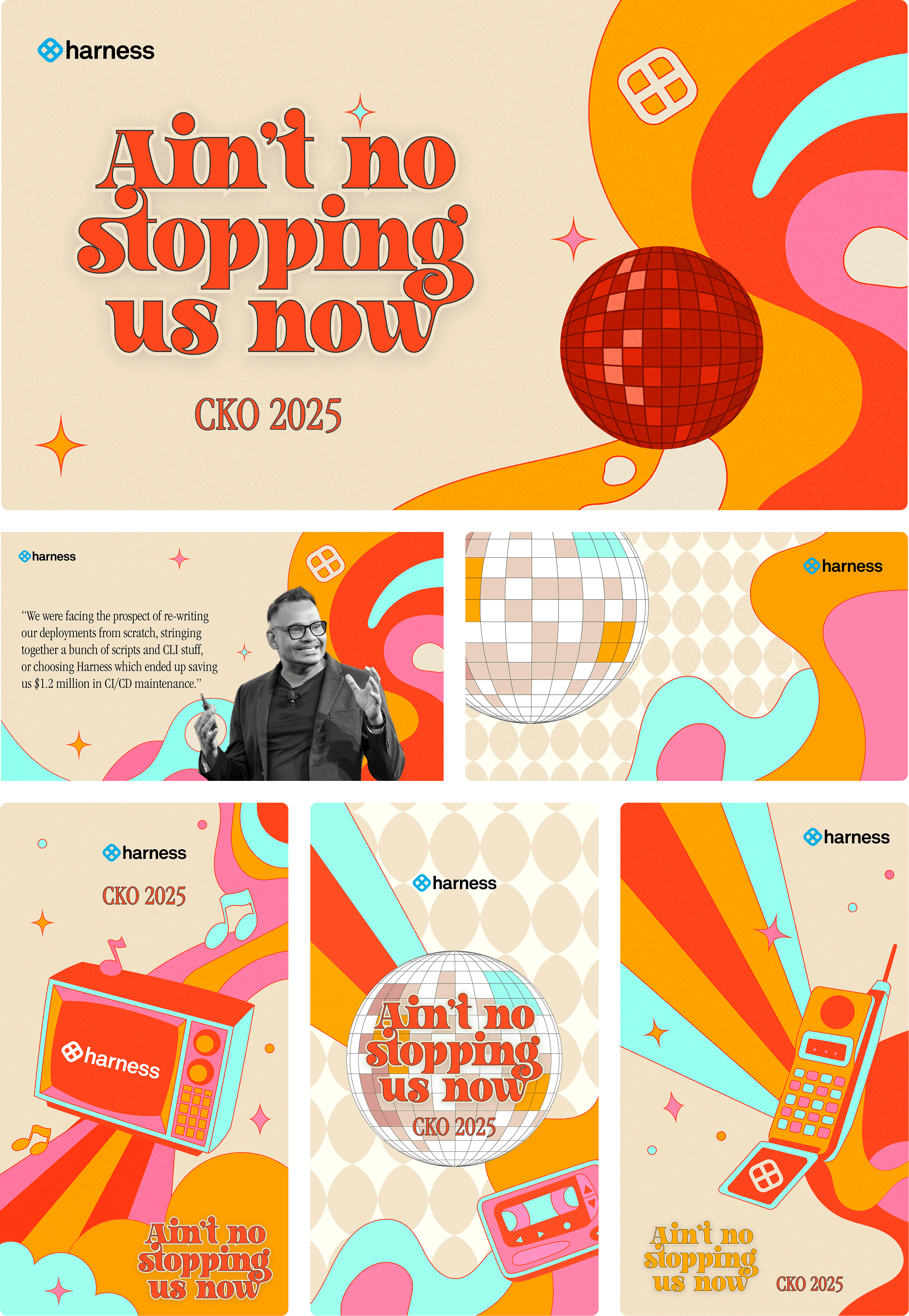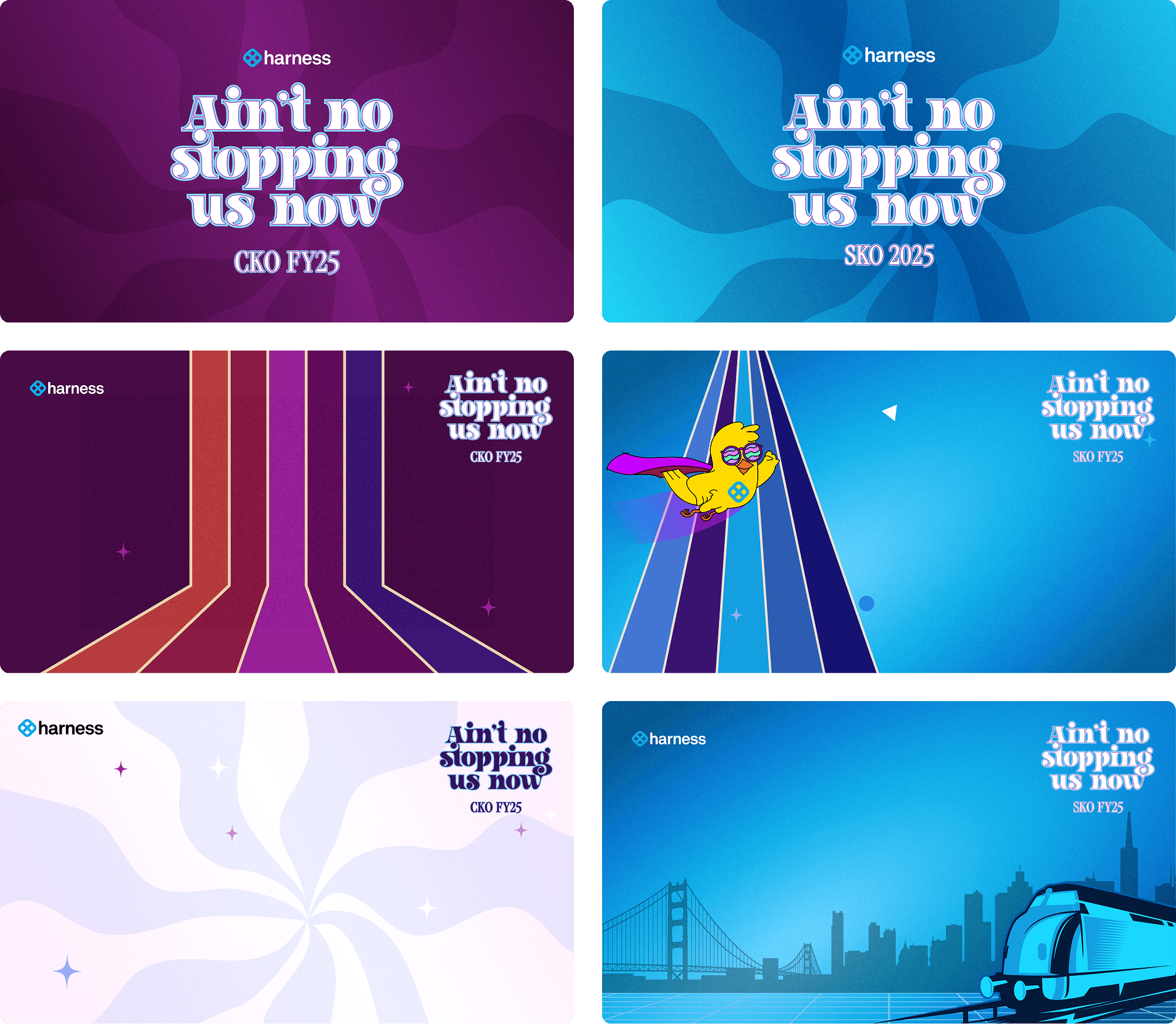 Harness hosted their annual Company Kick-Off for FY25. As this is one of their biggest online internal events, the style of collaterals had to be set apart while retaining key visuals from the Harness brand.