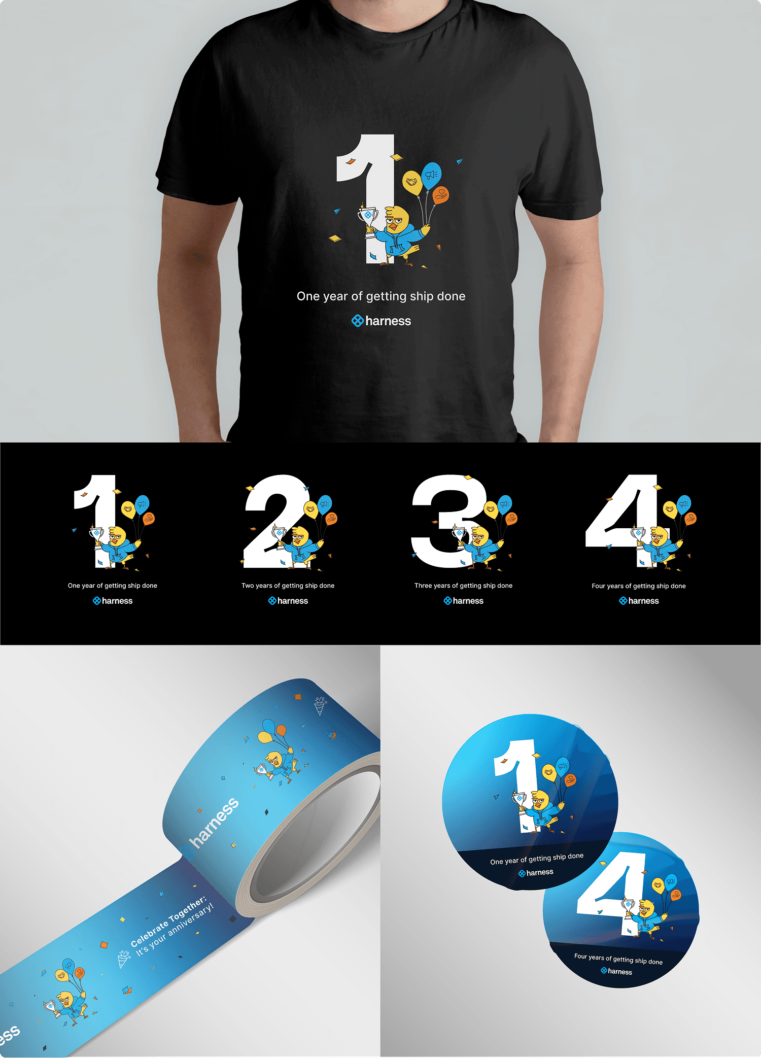 Harnessโs canary mascot is inspired by canary deployments, a software delivery method in which updates are first released to a small group of users to identify problems before a full rollout. The mascot is also adapted to different regions, with its illustration style tailored to fit local cultures and contexts, helping the brand feel more relevant and relatable across markets.