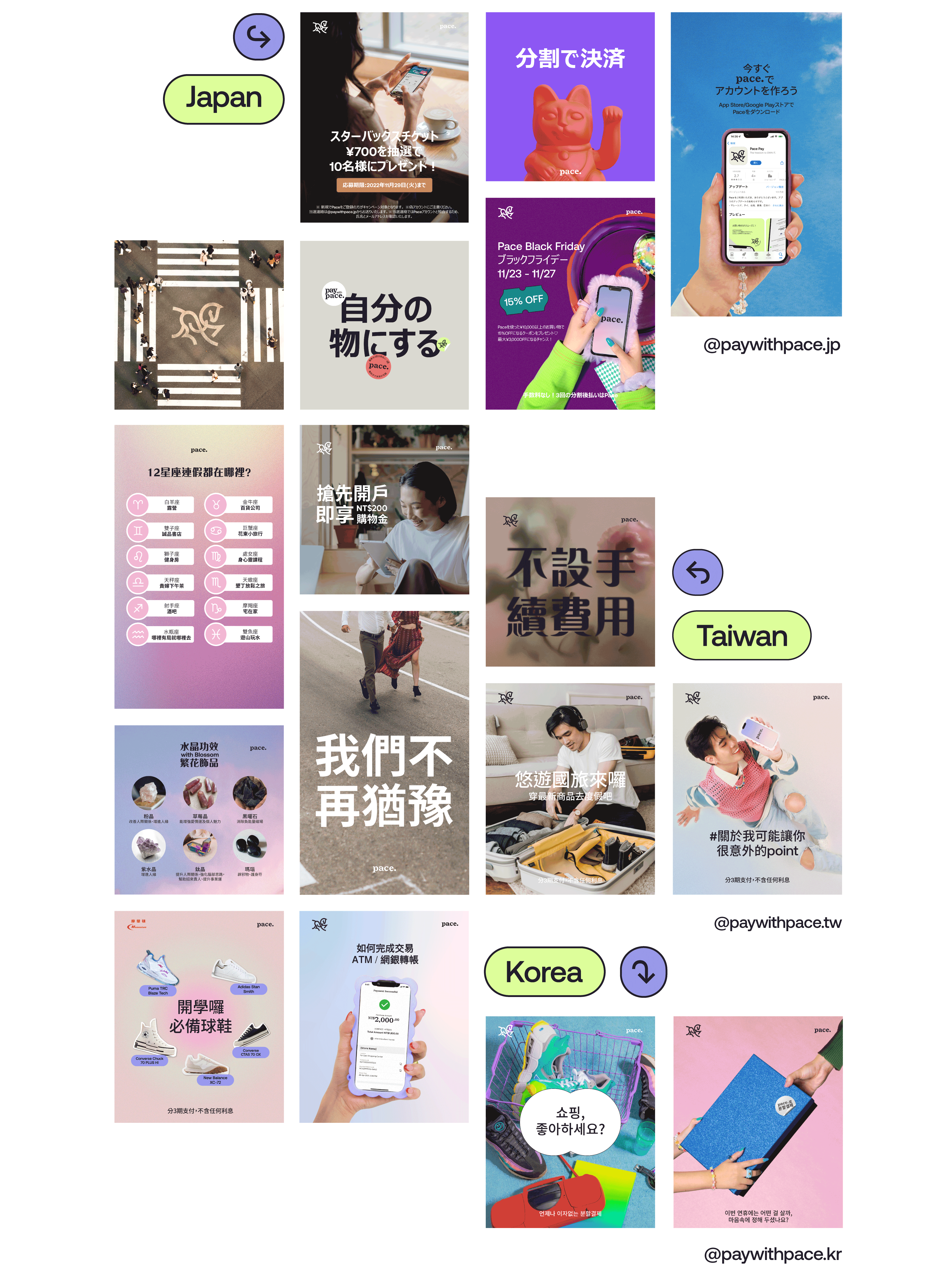 This is a collection of work I produced during my stint with Pace. As a brand designer, my role adapted to each project, allowing me to contribute across different design needs. I was involved in all aspects of the design process, from brainstorming concepts to executing final designs.