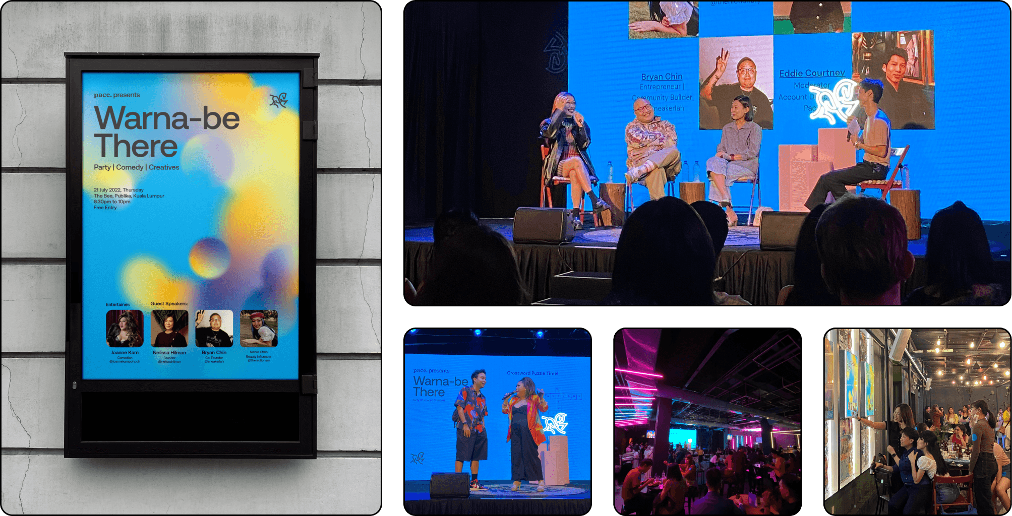 Warna-be There [KL] is a corporate event hosted by Pace where we invited 200 private attendees from the fashion & beauty industry. The talk surrounds the topic of buying habits of Gen-Z's by special guests, beauty influencer Nicole Chen, sneaker guru Bryan Chin, and shoe designer Nelissa Hilman. The event also had a special guest, the Queen of Comedy Joanne kam, who hosted a laugh-out-loud set.